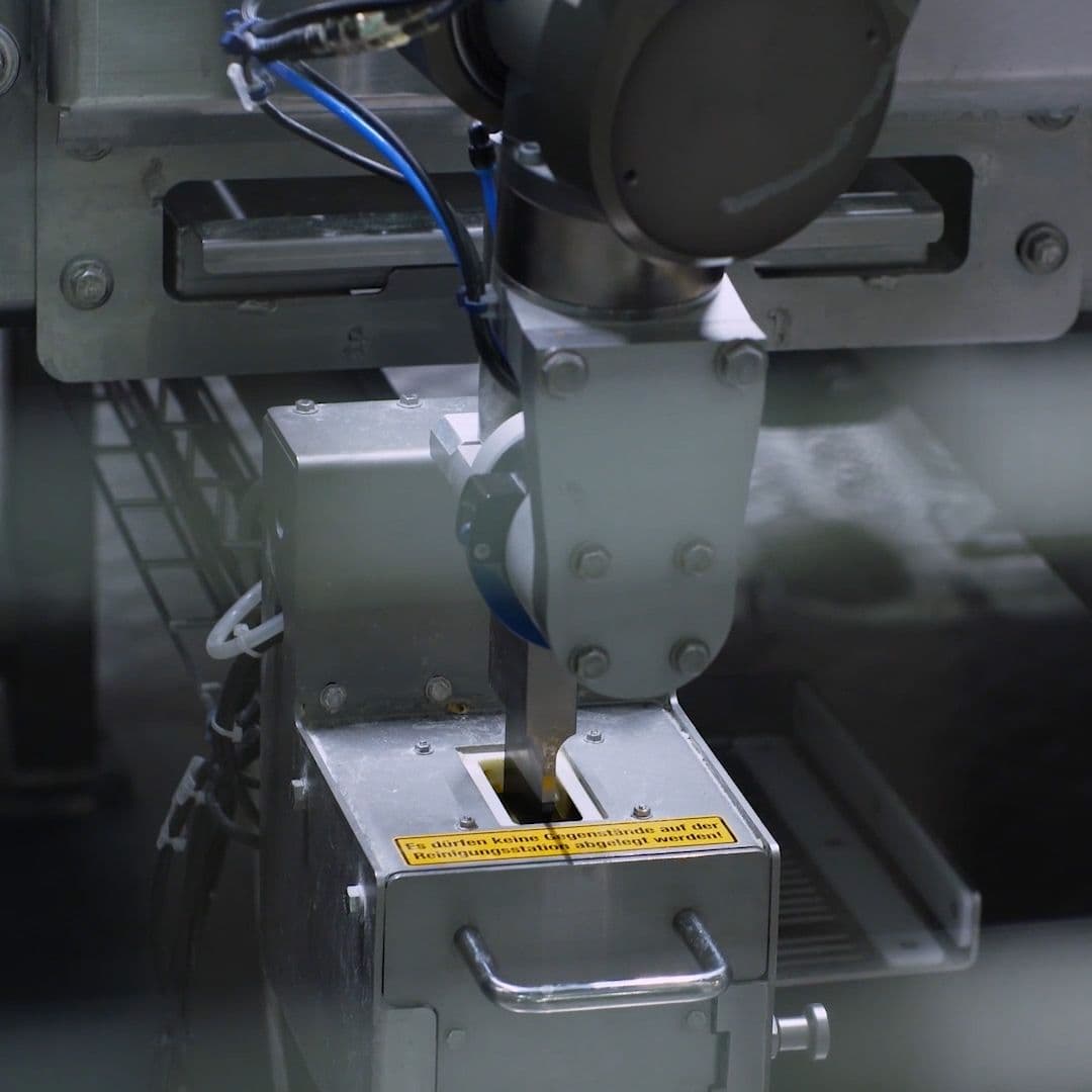With the use of four industrial robots from Stäubli and ultrasonic knives from Swiss Sonic, a flexible cutting cell could be realised.